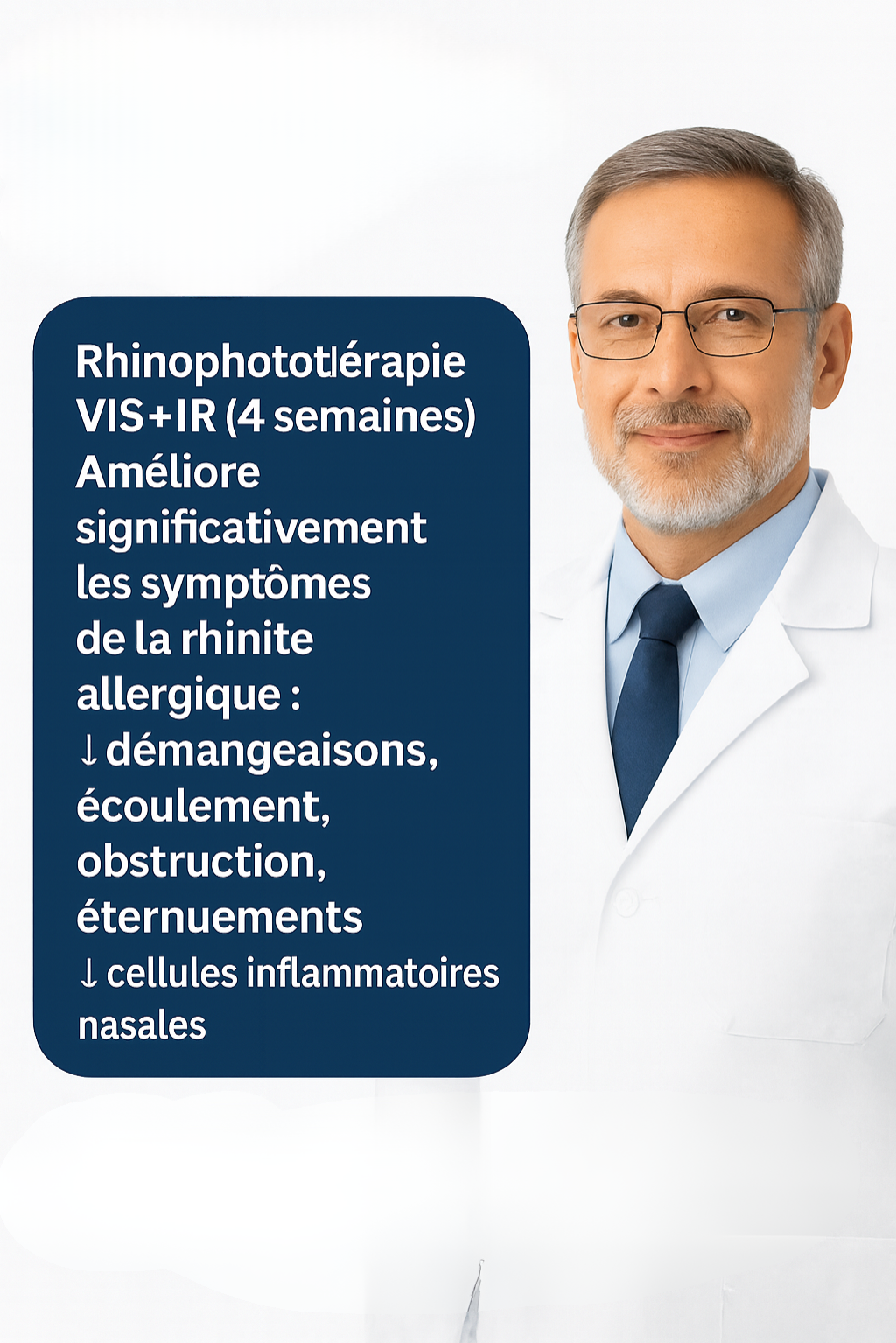 • Rhinophotothérapie VIS+IR : amélioration des symptômes de la rhinite allergique en 4 semaines