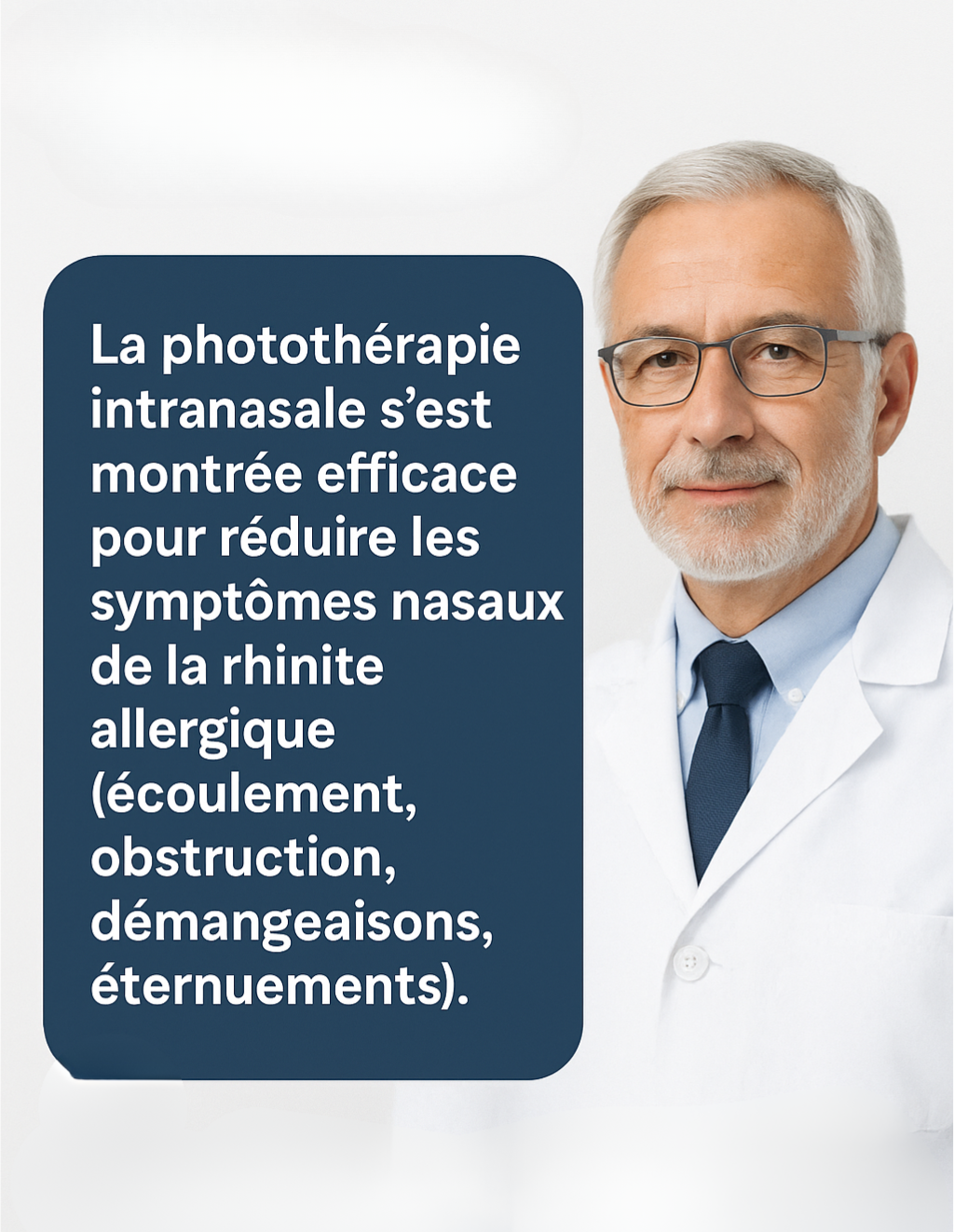 • Efficacité de la photothérapie intranasale sur les symptômes nasaux de la rhinite allergique